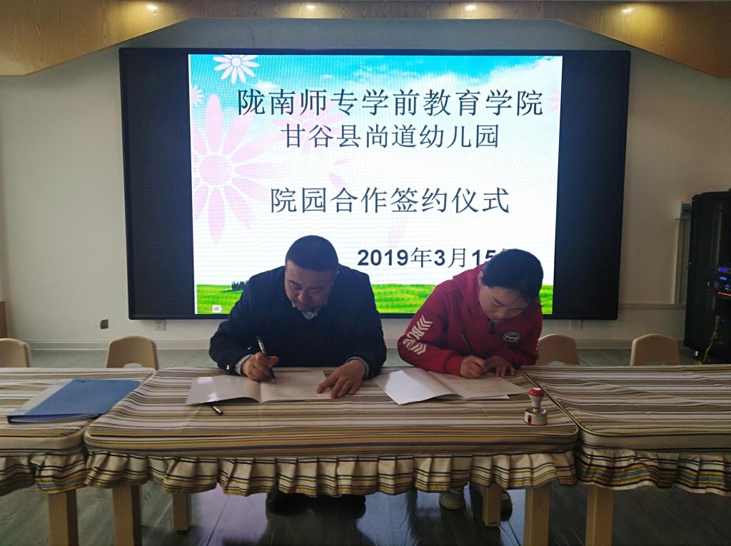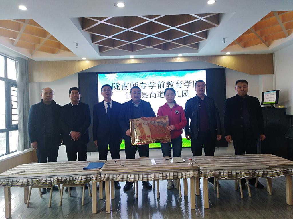 3月15日下午,威廉体育官方网站与甘谷尚道幼儿园教育实践基地挂牌签约仪式在尚道幼儿园举行。威廉体育官方网站经理王小会和幼儿园负责人一起签订了《合作共建教育实践基地协议书》并挂牌。