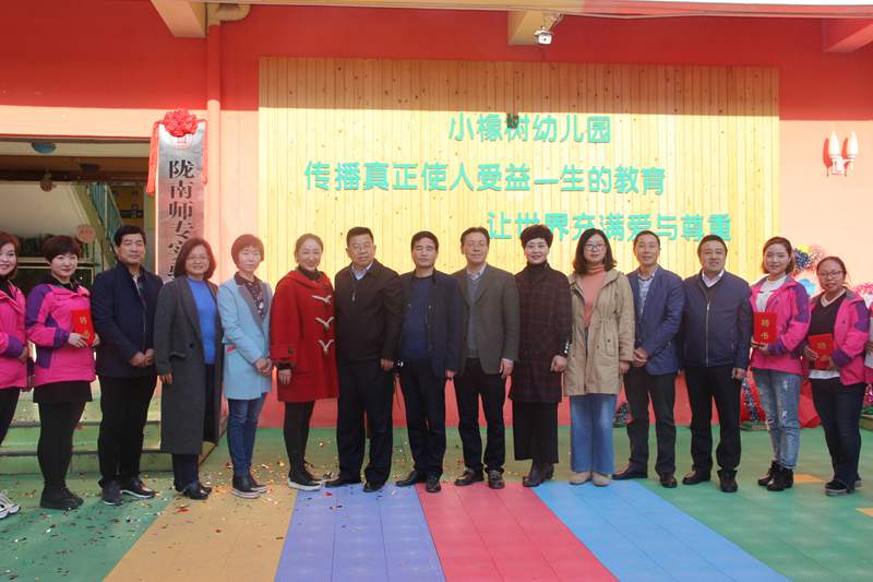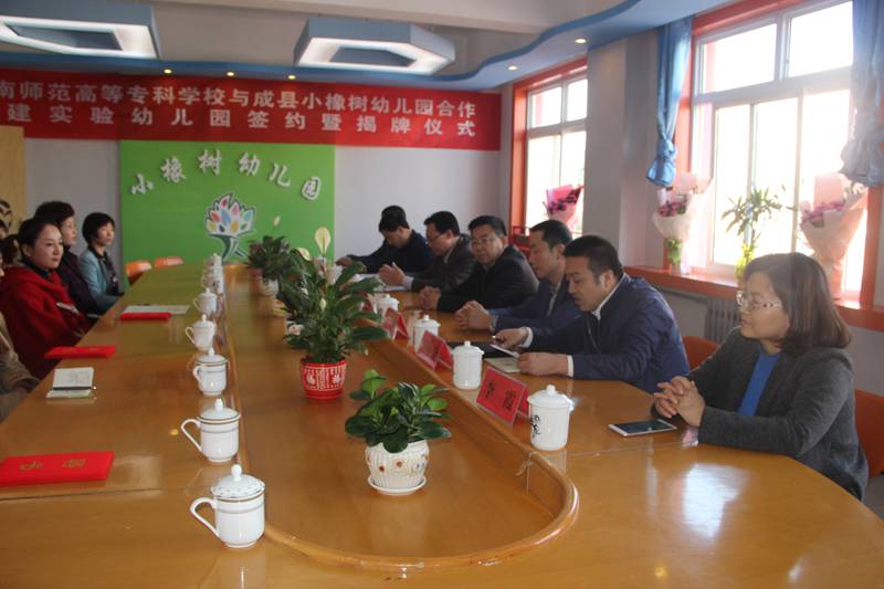 10月18日下午,陇南师专和成县小橡树幼儿园合作共建实验幼儿园签约仪式在成县小橡树幼儿园举行。公司董事长刘先春、副董事长王胜青及威廉体育官方网站相关负责人参加签约仪式并揭牌。签约仪式由成县教育局副局长谢靖主持。