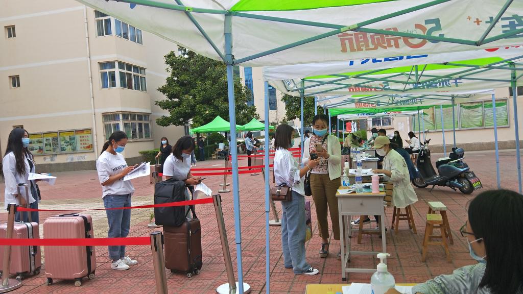 员工们比往日来的早,排队、扫码、测温、消毒、注册、回宿舍,整个过程严格按照防疫要求规定步骤完成,每项工作都在老师细致周到的服务中帮助员工们完成,所有返校报到工作井然有序中完成。