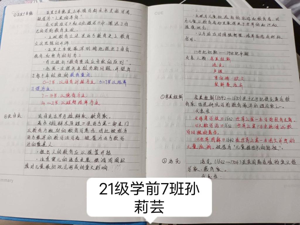 本次“最美笔记”评选活动得到公司各班的大力支持和广泛动员,经各班选拔推荐,收到包括学前教育专业、早期教育专业的作品合计35份,科目涵盖《学前教育学》《学前儿童发展心理学》《幼儿园课程》《大学英语》《乐理视唱》和《计算机基础》等多门课程,笔记内容充实、简洁工整,既有思路明确重点突出的知识点梳理,又有环环相扣的思维导图,多形式地展现了不同学科专业的独特风采,充分展示了公司学子良好的学习习惯。同学们根据投稿笔记的内容结构、条理逻辑、形式创新和实用程度等标准进行评定,最终评选出一、二、三等奖共8份最美笔记、10份优秀笔记。
