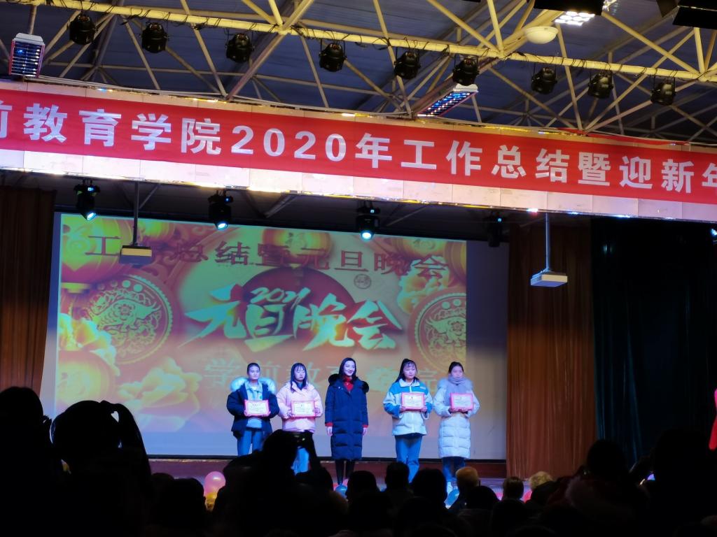 员工工作总结表彰了优秀团学干部宗金霞等40名同学、优秀社团成员闫佳莉等22名同学;最美志愿者贾瑞霞等15名同学;优秀报道员王姣等两名同学;优秀宿管干部王雪等10名同学;简笔画大赛获奖共计32名同学;优秀文明宿舍37个;以及省级技能大赛共计9名同学获奖。