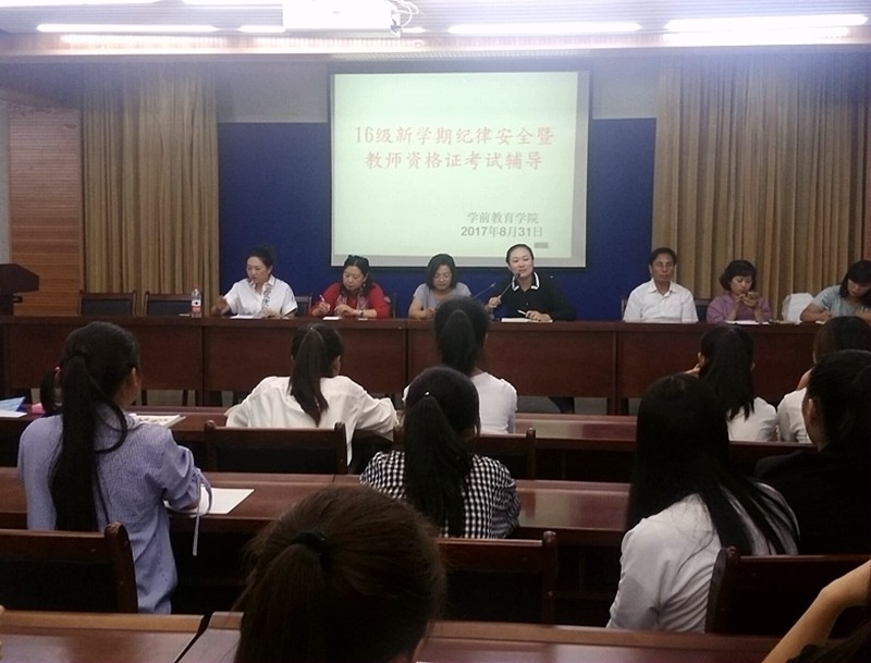 8月31日晚七点半,威廉体育官方网站在餐饮楼五楼多功能报告厅召开了2016级新学期纪律安全暨教团队格证考试辅导大会,出席此次大会的有公司党总支书记李霞,副书记朱燕,副经理杨晓晓,团总支书记马妍丽,辅导员袁保荣,刘代娜,武秋梅,武一康,以及16级全体同学。会议由李霞主持,她首先介绍了此次大会的主要内容及相关要求。为了使员工全面了解奖助学金的相关政策,激励员工更加努力学习,接下来由辅导员刘代娜老师对新颁布的奖助学金评定政策进行了解读。