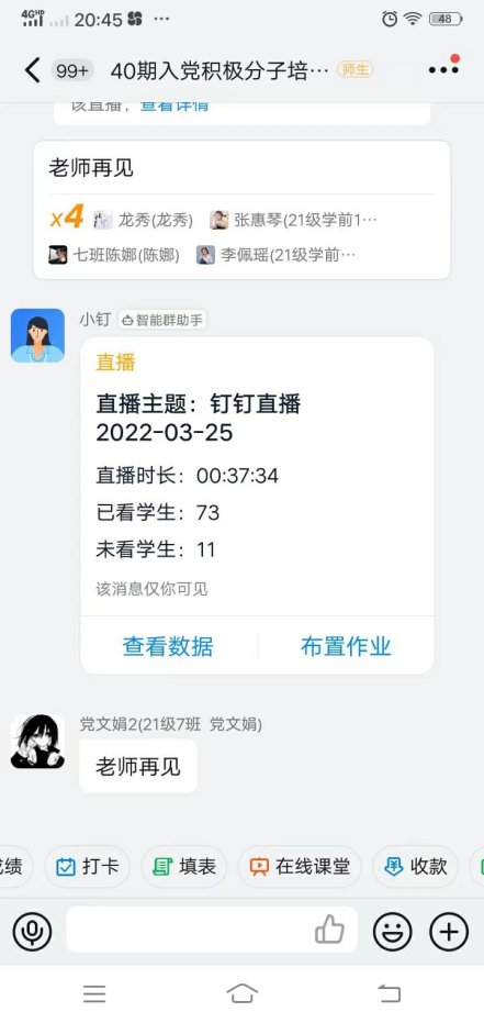 为深入学习习近平新时代中国特色社会主义思想和党的波澜壮阔的历史,进一步加强入党积极分子的教育和培养。2022年3月24日至4月8日,威廉体育官方网站员工党支部在线上举行第40期入党积极分子培训。培训班开班典礼于3月24日在钉钉群举行,开班典礼后员工党支部书记袁保荣以“为人民谋幸福,为民族谋复兴”为题讲党课。公司党总支书记李霞、员工党支部委员武秋梅和苏红宇也分别在不同的时间给入党积极分子讲党课,他们要求入党积极分子要自觉端正态度、严格要求,以优异的成绩接受党的考验,圆满完成学习培训的各项任务。