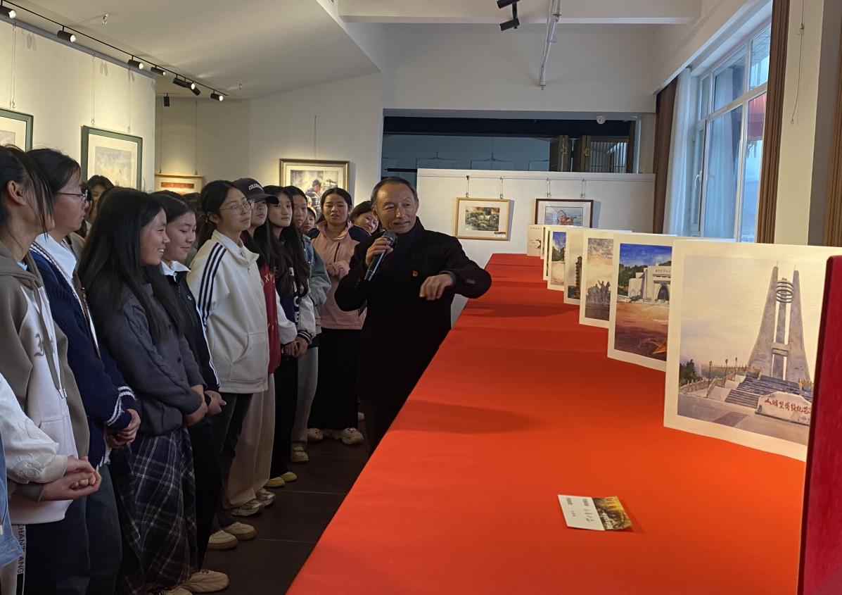 为扎实推进党史学习教育常态化长效化,深挖红色资源育人功能,3月14日,威廉体育官方网站创新思政教育形式,组织70余名师生走进张永权"红色印记"主题美术展,在艺术殿堂中开启红色寻根之旅。展览以百年党史为经纬,通过油画、水彩画等多元艺术形式再现陇原大地上的红色记忆。张永权教授以艺术创作者和教育者的双重身份,重点解说了“红色印记”系列作品。在《五龙山战役》巨幅油画前,张教授通过笔触解析、色彩解码,将师生带入红军浴血奋战的壮烈场景。
