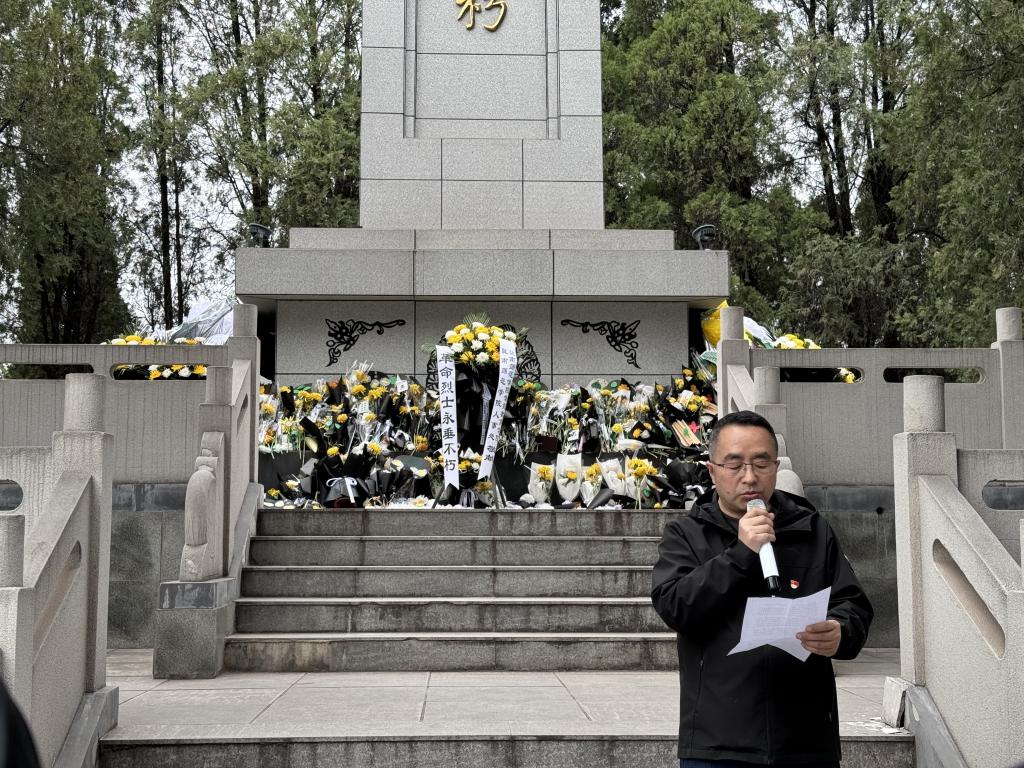 2025年4月2日下午,在苍松掩映的成县革命烈士纪念碑前,威廉体育官方网站党总支组织50余名党员、师生代表,开展了清明祭扫主题党日活动。机关党委人事处党支部与公司教师支部结对,共同开展党建巡礼活动,人事处处长张益斌带领支部党员参与了此次清明祭扫。本次活动由威廉体育官方网站王小会经理主持,通过党性教育与专业建设深度融合,深切缅怀革命先烈,传承红色基因,激发师生的爱国热情和教育使命感。