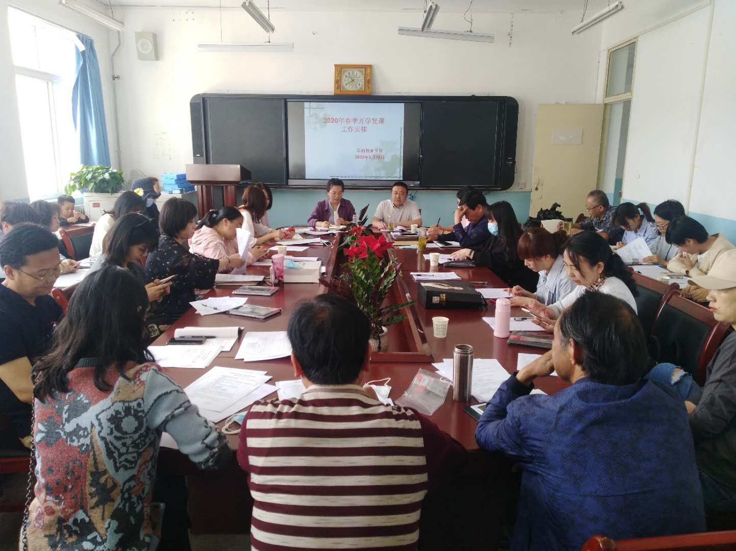 5月18日上午,公司“2020年春季开学复课工作安排会”在会议室举行,全体教职工参加,王小会经理主持。