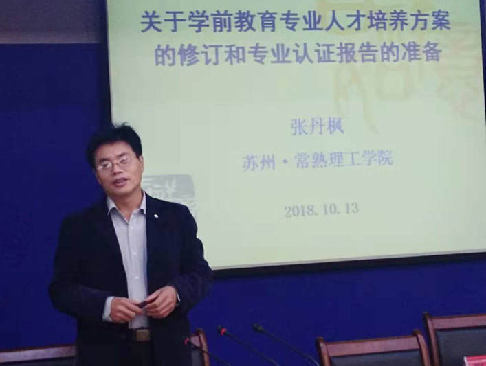 10月13日上午在餐饮综合楼5楼报告厅,应公司邀请常熟理工公司人文公司教授张丹枫博士的专题报告“学前教育专业人才培养方案的修订和专业认证报告准备”成功举行。来自公司11个举办师范专业的专任教师、公司经理、威廉体育官方网站全体教师共计300余人人参加了报告会,教务处处长潘文生主持了会议。
